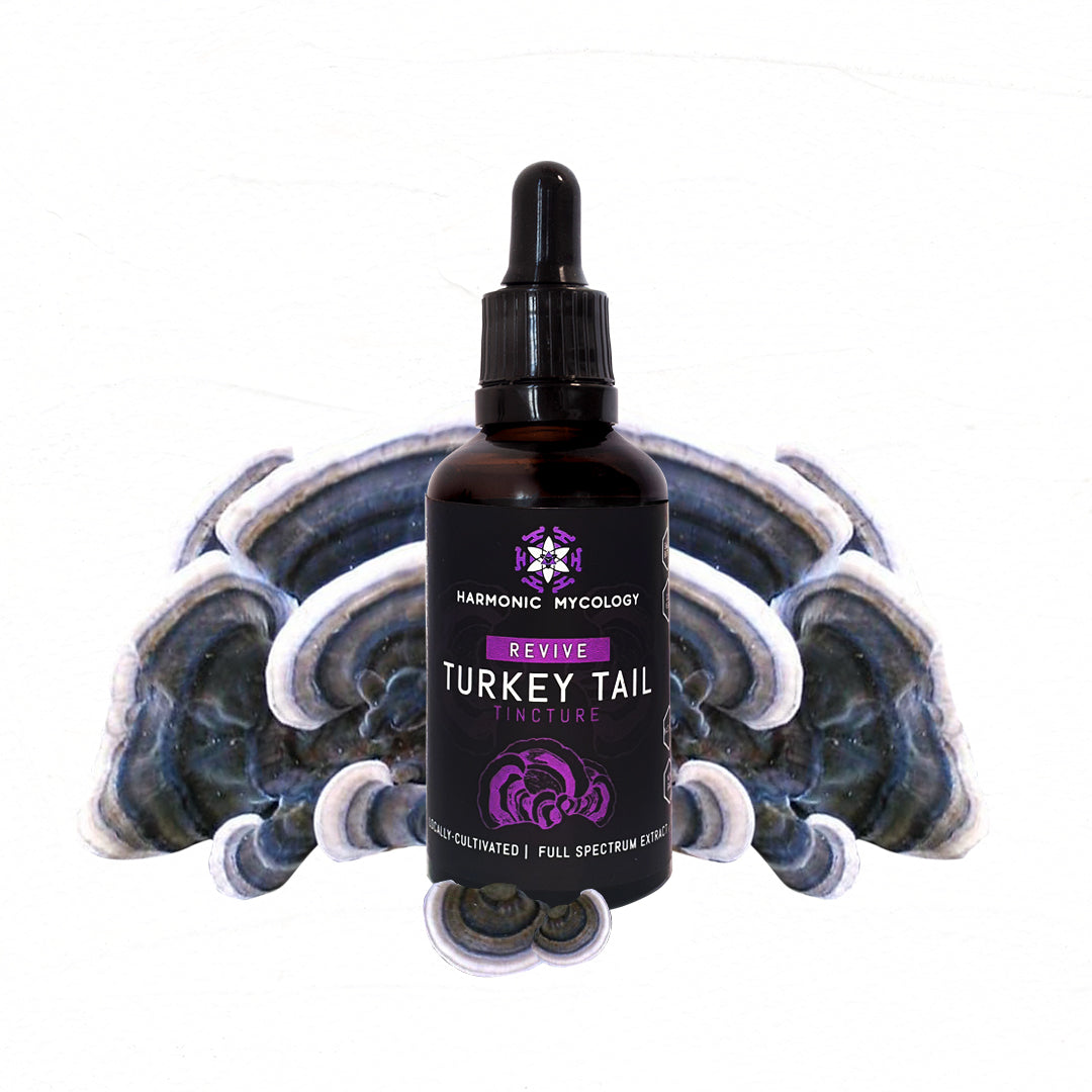 Premium Turkey tail triple-extract tincture. We've carefully crafted this extract to combine the best of traditional and contemporary methods, ensuring you receive a full-spectrum, bio-available, and highly potent mushroom elixir.