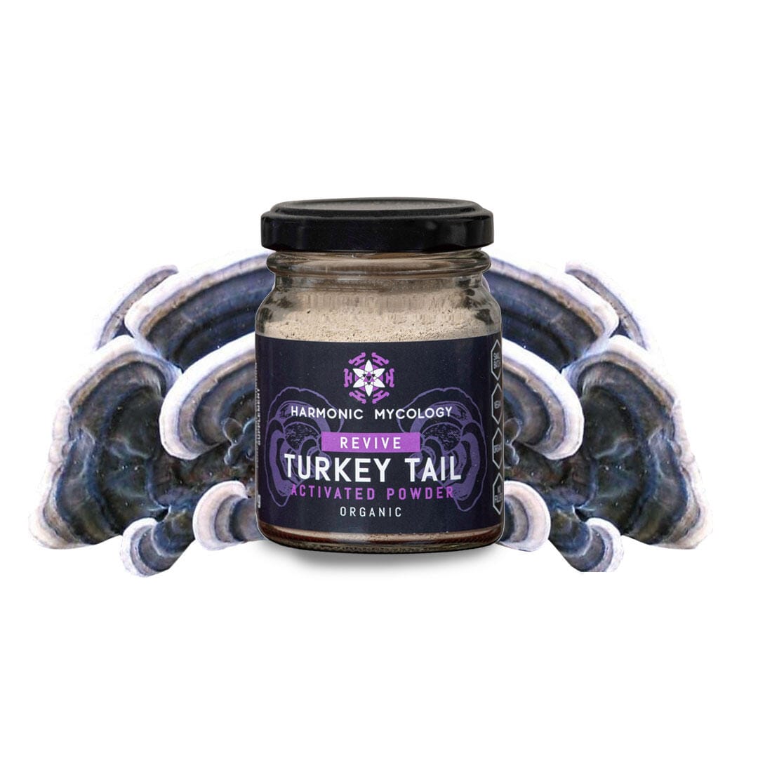 Premium organic Turkey tail mushroom powder. Our Turkey tail powder is gently activated, softening the cell walls of the mushrooms to enhance bioavailability for maximum absorption. We believe in the benefits of wholefood supplementation, providing you with the full range of compounds, just as nature intended.